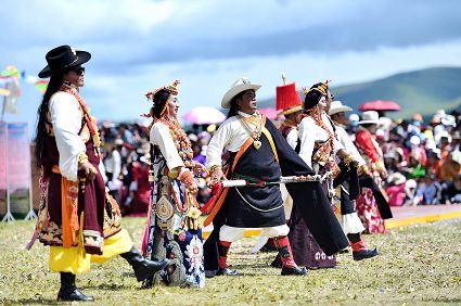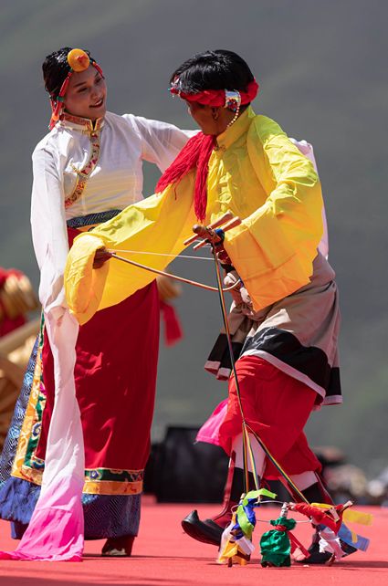 8月6日至8日,2020四川甘孜山地文化旅游節(jié)系列活動之一的色達金馬文化節(jié)在色達縣扎青塘草原舉辦。當?shù)厝罕娚碇?jié)日盛裝載歌載舞、歡聚一堂,文藝表演、賽馬、傳統(tǒng)藏族民俗體育比賽、傳統(tǒng)服飾表演、民間藝術和非遺展演等活動精彩紛呈。