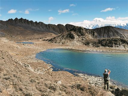 雪山、海子是高原風光的重要組成,讓人迷醉的風景里少不了它們的身影。在大山脊看貢嘎的徒步線路中,沿著大山脊還有一條較為小眾的徒步線路,是由海子串起的,同樣整個線路都可以看見貢嘎主峰。