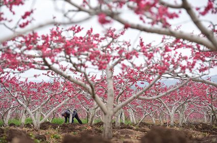 3月30日,在湖南省永州市新田縣驥村鎮(zhèn)黃公塘村,村民在田間用耕牛犁地。