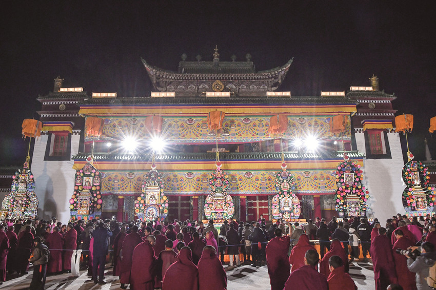 農(nóng)歷正月十五,在甘肅省甘南藏族自治州夏河縣,被譽(yù)為“世界藏學(xué)府”的拉卜楞寺舉行一年一度的酥油花燈展,僧人們制作的精美酥油花作品吸引了眾多僧俗群眾和海內(nèi)外游客前來(lái)觀看。