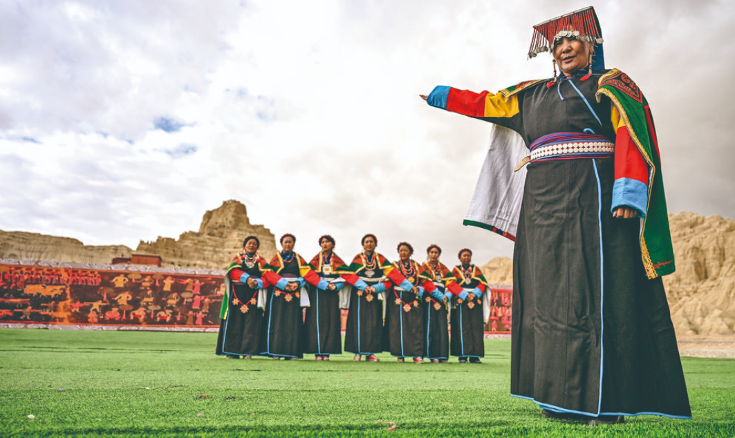 “宣舞”起源于札達(dá)縣,是西藏阿里民間傳統(tǒng)舞蹈?!靶琛比诤喜貞颉⑽璧?、說(shuō)唱等主要的藏民族民間藝術(shù),內(nèi)容涵蓋藏民族宗教、禮儀、風(fēng)俗、節(jié)慶等各方面的內(nèi)容。2008年,“宣舞”入選第二批國(guó)家級(jí)非物質(zhì)文化遺產(chǎn)名錄。