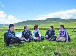 新龍縣拉日馬牧區(qū)派出所,地處海拔3768米的山塬草地,全所干警7人,負責管理方圓1527.19平方公里內(nèi)7個行政牧村、53個牧業(yè)小組、1269戶共計5600多人的治安秩序。這里遠離縣城,卻和周邊理塘、雅江、道孚三縣牧區(qū)相接,社會狀況復雜、自然環(huán)境惡劣,轄區(qū)內(nèi)大多數(shù)牧場靠騎馬、步行跋涉才能到達。多年來,全所干警以艱苦為榮,與牧民一家親,并用實實在在的工作業(yè)績,徹底改變了過去突出存在的打架斗毆、交通混亂和治安案件時發(fā)等問題。牧區(qū)的和諧穩(wěn)定,牧民的安居樂業(yè),贏得了牧民群眾的交口稱贊。(紫夫/文 扎西澤仁/圖)