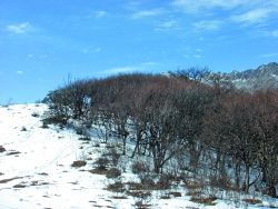 似乎是在快接近馬鞍山山脊的時(shí)候,坡度才開(kāi)始變小的。這時(shí),積雪也比較多了。
