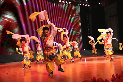 在歡快的音樂聲中,《師恩如歌》拉開了“園丁頌”文藝晚會(huì)的序幕。悠揚(yáng)的歌聲,歡快的舞蹈,熱烈的掌聲,演繹著同一個(gè)主旋律:“老師,是您為我們開啟了智慧的大門,加減乘除,算不盡您做出的貢獻(xiàn)!詩詞歌賦,頌不完對(duì)您的感激!千言萬語只能匯成一句話:老師,您辛苦了,我們永遠(yuǎn)感謝您!”晚會(huì)以“園丁頌”為主題,分為“播種希望”、“愛的光芒”、“九月禮贊”三個(gè)篇章。歌曲《圓夢中國》、情景劇《守望白云》、舞蹈《老師親,媽媽親》等13個(gè)節(jié)目先后上演。一首首膾炙人口的歌曲,唱出了對(duì)人民教師的無限深情,一個(gè)個(gè)激情昂揚(yáng)的舞蹈,道出了對(duì)人民教師的萬般感激。旋律優(yōu)美、歡快熱烈、精彩紛呈的晚會(huì)深深地吸引了現(xiàn)場觀眾的眼球。一聲聲發(fā)自內(nèi)心的問候,一句句來自心靈的祝福,將晚會(huì)一次次推向高潮,晚會(huì)現(xiàn)場掌聲雷動(dòng)、歡呼雀躍,《吉祥祝?!犯栉璞硌轂檎_(tái)晚會(huì)畫上了一個(gè)圓滿的句號(hào)。