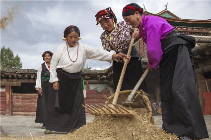 康定市姑咱鎮(zhèn)達(dá)杠村村民李翠軍一邊采摘著蘋果,一邊喜悅地告訴記者,達(dá)杠所產(chǎn)的蘋果個(gè)頭大、色澤好、吃味好、耐儲(chǔ)藏,到目前,全村蘋果種植面積800多畝,去年蘋果產(chǎn)量160萬斤,今年雨水好,蘋果產(chǎn)量將猛增到200萬斤以上。目前,村子里蘋果種植大戶家庭年收入過10萬元的就有20多戶??刀ㄊ袑⑦_(dá)杠村打造成川藏觀光農(nóng)業(yè)第一村。按照規(guī)劃,村里會(huì)進(jìn)一步擴(kuò)大蘋果種植面積,以蘋果利用為核心,發(fā)展“春賞花、夏攝影、秋摘果、冬體驗(yàn)”四季觀光農(nóng)業(yè)產(chǎn)業(yè)。五谷豐登六畜興旺,甘孜高原共慶豐收。農(nóng)民豐收節(jié),它既是億萬農(nóng)民慶豐收、曬豐收的節(jié)日,也是全社會(huì)享豐收、助增收的節(jié)日;既寄托著農(nóng)民的追求、農(nóng)民的希冀,也承載著全體中華兒女的深情與追憶;中國農(nóng)民豐收節(jié),農(nóng)牧民收獲的不只是甜蜜蜜的果實(shí),鼓起的不只是沉甸甸的荷包,更是滿滿的榮譽(yù)感、幸福感、獲得感!