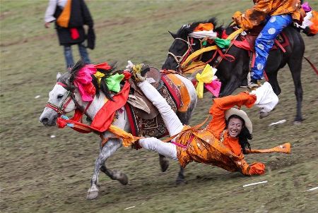 來(lái)理塘賽馬節(jié) 看康巴漢子帥氣飚馬
