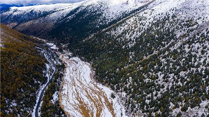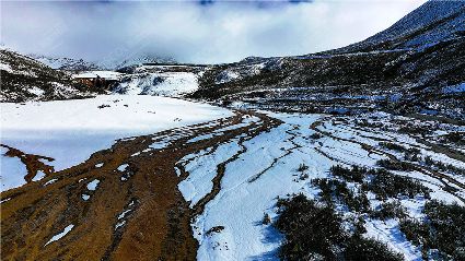 瞰康定甲根壩雪景賞亞洲最大鈣化灘