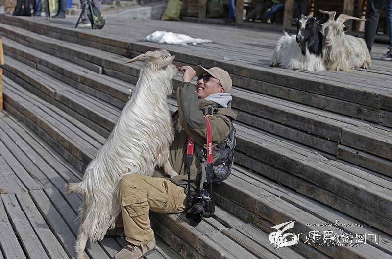 在神山腳下,佛教徒放生的一些山羊和游客親密無間。山區(qū)氣候多變,一場大雨突如其來。