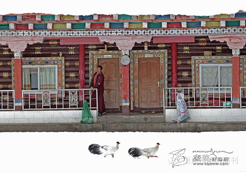 兩只藏馬雞在措普寺內(nèi)覓食