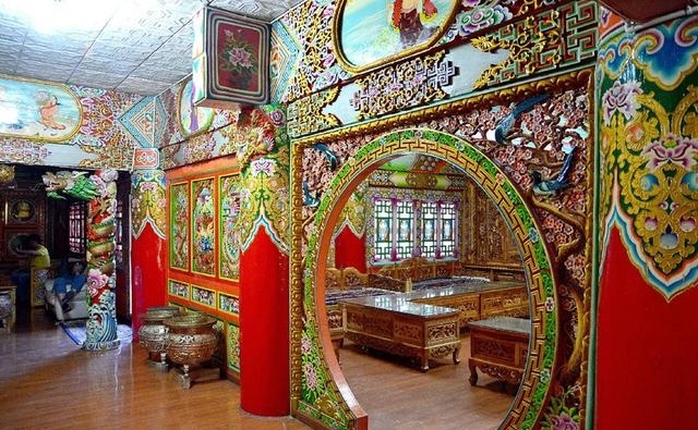 道孚民居室內(nèi)精雕細(xì)鏤,描金繪彩,每一個(gè)圖案或圖畫就是一個(gè)吉祥物或一個(gè)傳說(shuō)。民居客廳陳設(shè)豪華,富麗堂皇,極顯主人的富有;經(jīng)堂供奉佛像,酥油燈長(zhǎng)明,是家中的清靜之地;臥室多用箱式或椅式藏床,陳設(shè)溫馨而別具風(fēng)情。