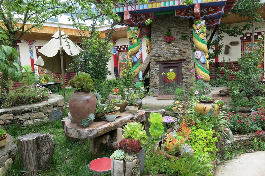 在中路,以古井藏語為名的德孜青麥就是一家以田園生活為主題的民宿。民宿內(nèi)古井幽幽,四周景致精心布置。倚靠古井旁、坐在古樹下,品一壺清茶、聊一番人生,好不愜意。主人巴絨說,這口古井養(yǎng)育了世世代代的中路人,寄托了中路人濃濃的鄉(xiāng)愁。