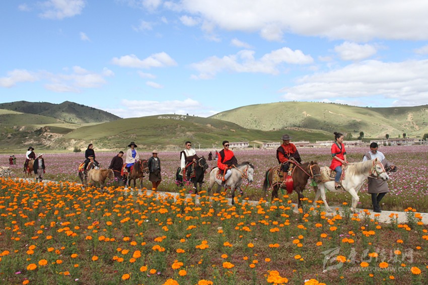 過去的漢戈村曾經(jīng)是貧困村,2016年,當(dāng)?shù)乩脟彝度氲闹攸c生態(tài)功能區(qū)轉(zhuǎn)移致富資金1100萬元,打造了花海景觀,解決村民就業(yè)1200余人次,鼓勵村民依托國道227線穿村而過的交通優(yōu)勢,借助花海發(fā)展帳篷民宿,騎馬、射箭等具有藏族特色的旅游產(chǎn)業(yè),每年吸引游客5萬余人,漢戈村人均增收2800多元。