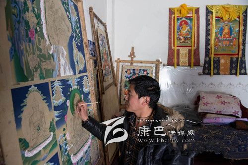 11月11日,一位畫(huà)師在創(chuàng)作郎卡杰唐卡。
