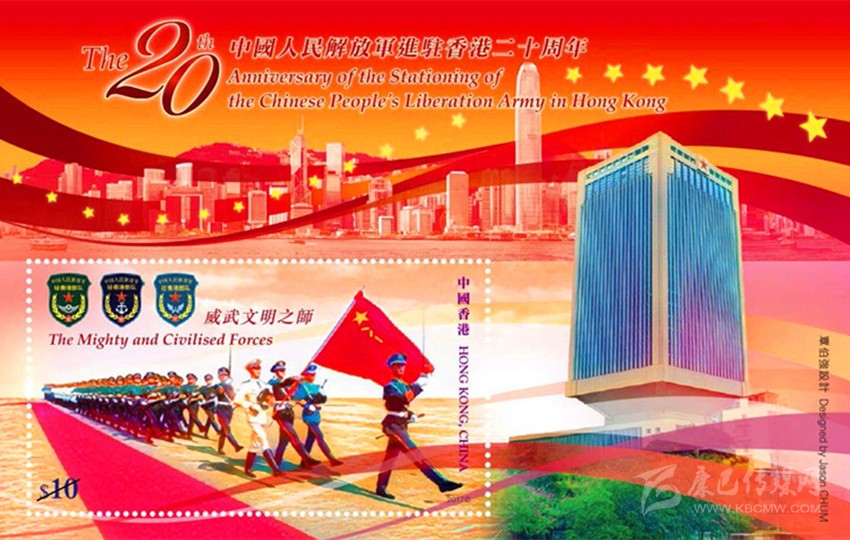 6月20日發(fā)行的《中國人民解放軍進(jìn)駐香港二十周年》郵票。
