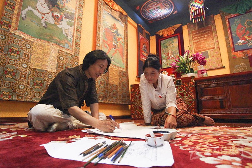 2013年,由于房租壓力實(shí)在過大,拉孟聯(lián)系了郫縣的場地,準(zhǔn)備再次搬家。得知消息后,晉陽街道免費(fèi)將約300m2的活動室提供給拉孟,并創(chuàng)建了晉陽街道民族文化之家。至此,加上租來的中國唐卡場館,拉孟有了足夠的教學(xué)場地。為讓拉孟安心教學(xué),次年3月,武侯區(qū)民宗局、晉陽街道辦又幫著他,注冊了“成都拉孟繪畫藝術(shù)交流中心”。