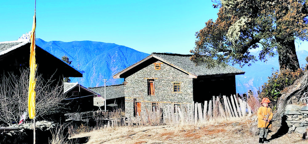洛克所經(jīng)過的地方就是三巖龍鄉(xiāng)的猛董,這是一處鮮為人知的隱世天堂。猛董有“五絕”,即“山、湖、谷、寨、寺”,山是被當(dāng)?shù)厝诵欧顬樯裆降柠湹刎暩拢湹兀卣Z為珍珠),湖是神山腳下的麥地措(珍珠湖),谷是雅礱江谷地的藍(lán)月山谷,寨是猛董“后花園”的普米寨子,寺是修建于明清時期的猛董古寺。