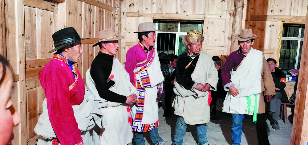 夜臨了,月低垂,整條山谷陷入了藍(lán)色的世界,近處是墨綠,遠(yuǎn)處是淡綠,雄渾的大山在綠的撫摸下也變得婀娜起來;古老寨子的火塘也燃起來了,勞作了一天的普米人聚在一起,跳起了原始氏族人群圍火而舞的傳統(tǒng)舞蹈,曲調(diào)悠揚(yáng)且古樸動人。