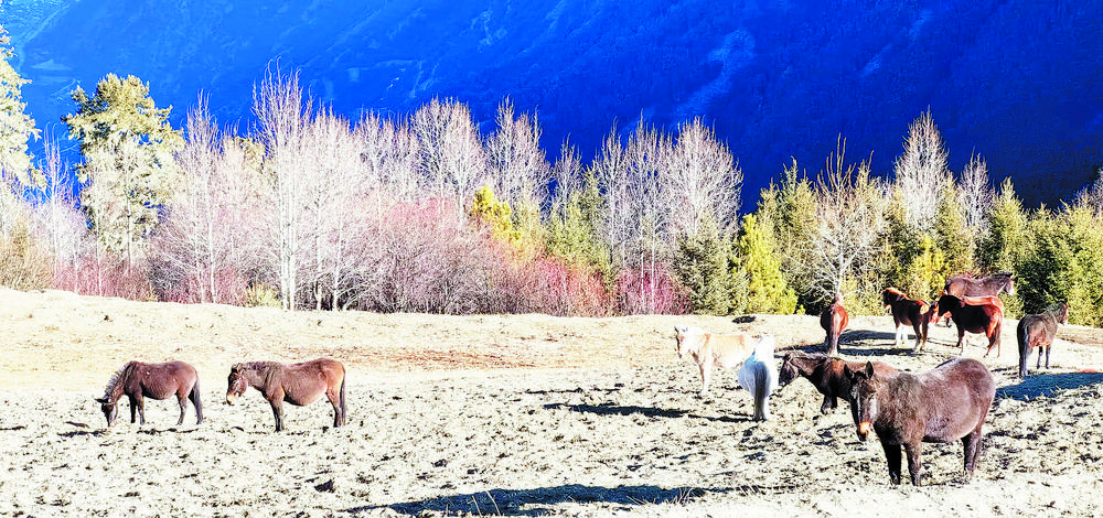 終年不化的積雪覆蓋在麥地貢嘎的褶皺里,似貴婦脖子上佩戴的串串珍珠;陽光溫柔地撒在神山腳下的湖面上,在微風(fēng)中碧綠的湖水靈動而閃耀,整個湖面有無數(shù)顆珍珠在跳動;大山深處的猛董古寺,固守著川滇茶馬古道古往今來的滄桑厚重,寺內(nèi)的壁畫,歷經(jīng)百年滄桑卻依舊熠熠生輝。