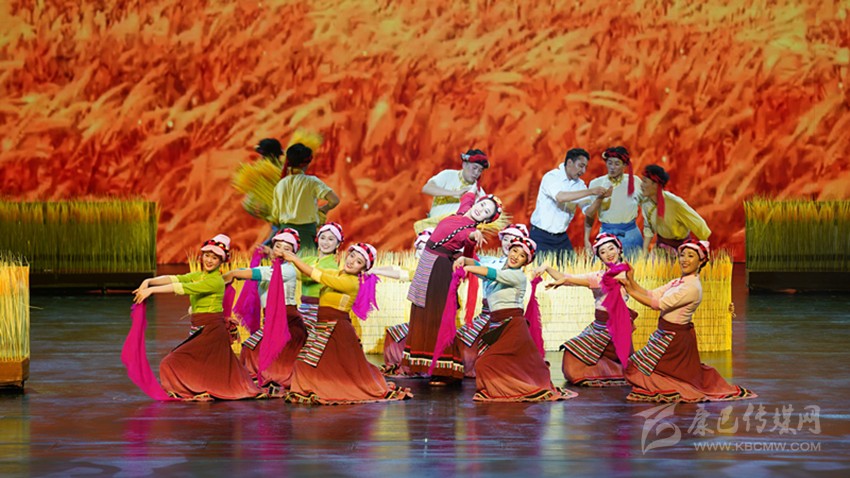 “金黃的麥浪中,‘第一書記’與‘農牧民群眾’載歌載舞,共同歡慶豐收的喜悅?!边@是我州赴廣東省群眾文藝交流演出中,舞蹈《援建人》中的一幕。