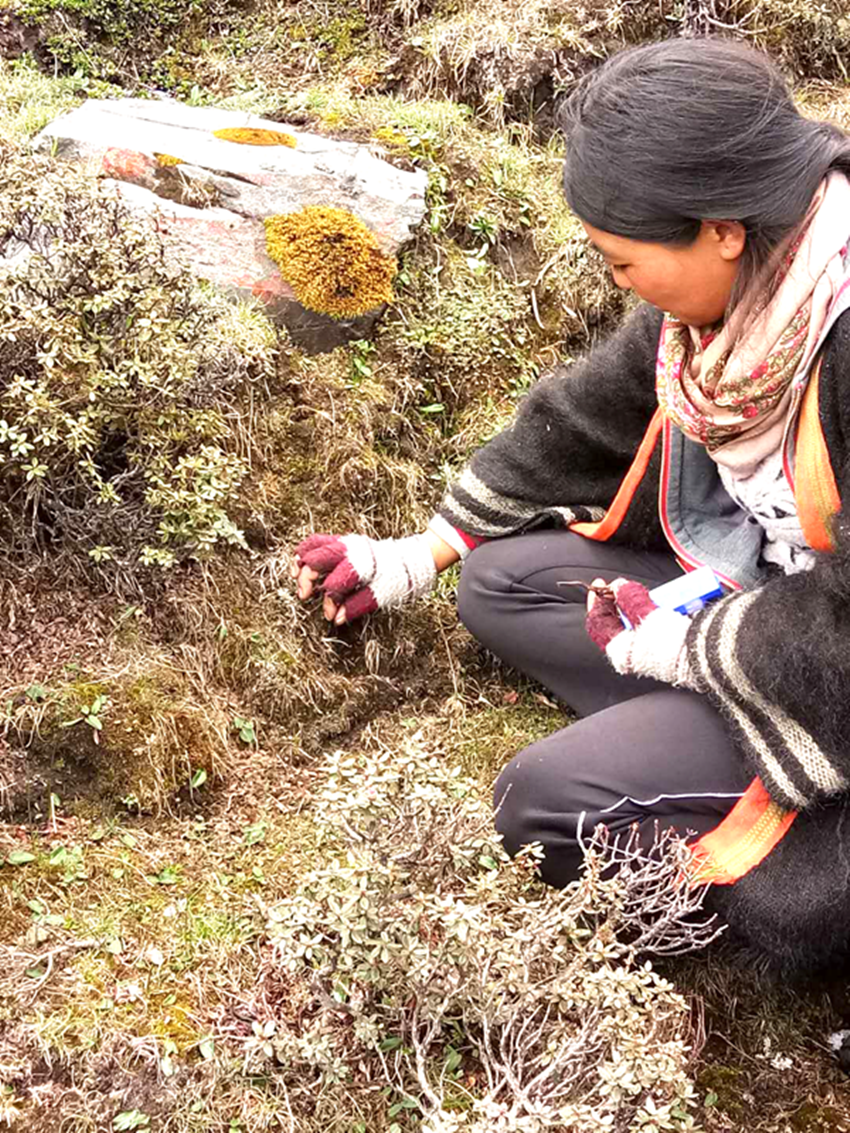 銀珠做完這個(gè)莊重的祈禱儀式,才從包里取出一個(gè)裝糖豆的鐵盒子,小心地將它放進(jìn)盒子蓋上,揣進(jìn)衣兜里。她重新埋好挖出的土,接著爬向了一叢叢小杜鵑,它們散發(fā)著淡淡的苦澀味,使她放慢了爬行的速度,細(xì)細(xì)尋找著干草木葉中的那些獨(dú)特菌類。她的手和膝蓋被雪水浸濕了,也不覺寒冷,自己像是其中的一種生靈。不一會兒,她就看到了好幾只蟲草的尾巴露在草皮上,它們的樣子分明是在歡喜奔跑,見到有人靠近倏忽間就停止下來了,令她忍不住發(fā)出了噗嗤一聲笑。南吉聽到這聲音,抬頭朝銀珠的方向看去,只見滿山的花草都在微風(fēng)中輕輕顫動。南吉看到銀珠許久沒有挪動,便知道她找到了自己的纖草堂子……