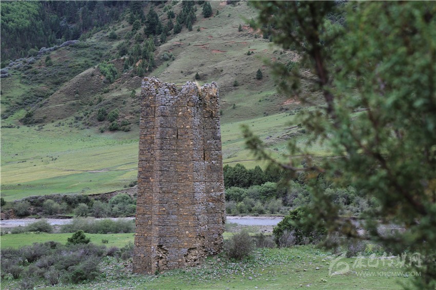 郭東古碉,位于理塘縣甲洼鎮(zhèn)卡娘村東山南側,屬川西北丘狀高原山地,花阿河的溝谷平壩上,距離理塘縣城約40公里。距離甲洼鎮(zhèn)政府約10公里,有草地簡易鄉(xiāng)間公路可通行,郭東古碉是漿族(藏語稱法,即今納西族)占領康區(qū)時軍事需要所建,現(xiàn)已廢棄。