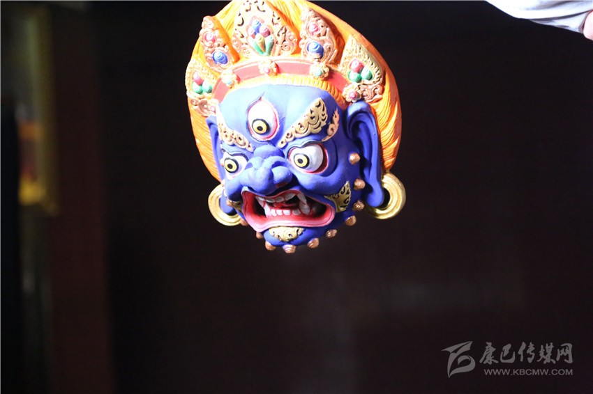 待面具自然風(fēng)干后,用礦物質(zhì)、植物的根等制作的自然顏料進(jìn)行著色,自然顏料有不變色、耐光的特性,通過一淡、二濃、三淡的上色過程使面具涂色均勻,待顏料曬干后對面具進(jìn)行磨光,去除雜物,再對面具進(jìn)行裝藏念經(jīng),如此,一個藥泥面具制作完成。做好的藥泥面具有濃郁的藥材香氣,并有著驅(qū)蚊、殺菌、抗病毒、清潔空氣、解除疲勞等功效。