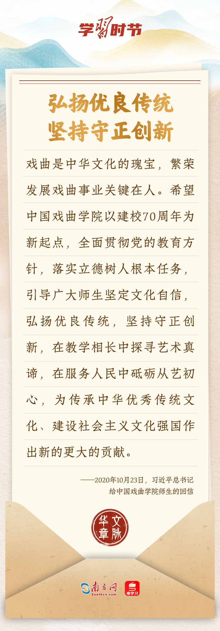 “中華民族在幾千年歷史中創(chuàng)造和延續(xù)的中華優(yōu)秀傳統(tǒng)文化,是中華民族的根和魂?!绷?xí)近平總書記多次通過發(fā)賀信、寫回信等方式,表達著對弘揚中華優(yōu)秀傳統(tǒng)文化的殷切希望,飽含深情、字字暖心、催人奮進。讓我們一起“讀”信。