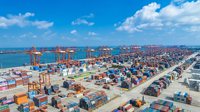 向海圖強,我國海運連接度全球領先,港口貨物吞吐量、港口集裝箱吞吐量等指標穩(wěn)居世界第一?!敖z路海運”聯(lián)通全球43個國家100多個港口。2023年,中國外貿(mào)海運量全球占比超三成。