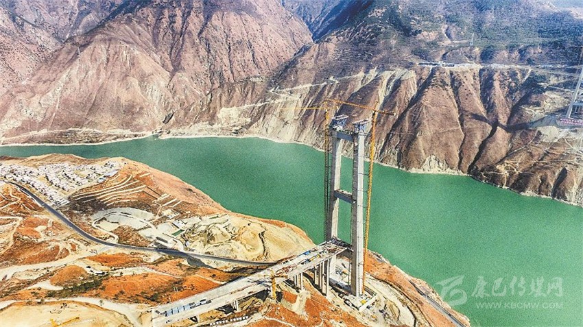 瀘定大渡河興康特大橋是雅康高速公路的重點(diǎn)控制性工程之一,是一座建在高海拔、高地震烈度帶上的超大跨徑鋼桁梁懸索橋,采用鋼混疊合橋道系,造價(jià)超過(guò)10億元,因建設(shè)技術(shù)難度大被譽(yù)為“川藏第一橋”。兩岸主墩索塔高188米,塔頂至河面垂直高差364米,橋橫跨大渡河,但在河中沒(méi)有橋墩,采取的是懸索橋設(shè)計(jì),在兩岸修建兩塔、兩錨,作為支撐和受力,橋面以懸索拉伸。未來(lái),大橋?qū)⒁?/span>1100米的超長(zhǎng)跨徑連通大渡河兩岸,變天塹為通途。 (何海洋 攝影報(bào)道)