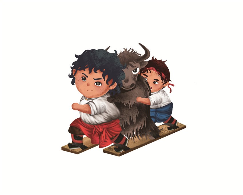 據(jù)悉,該卡通形象由康巴文化研究院設(shè)計,最早出現(xiàn)在去年的環(huán)貢嘎山百公里越野挑戰(zhàn)賽上,在各國越野高手云集的賽場上,一名身著傳統(tǒng)服飾的小藏娃牽著牦牛奔跑的形象令人過目不忘。而此次省民運會將繼續(xù)沿用“小藏娃和牦牛洛洛的形象”,康巴文化研究院組織專人設(shè)計,按照既生動可愛又準確把握運動項目特征的要求,將此次運動會中的蹴球、陀螺、射弩、高腳競速、板鞋競速、押加、珍珠球、民族式摔跤等8個競賽項目以卡通形象展現(xiàn)。