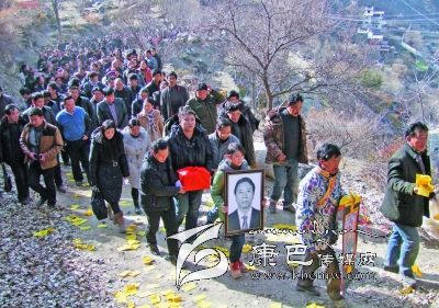 12月19日上午,畢世祥同志遺體在康定殯儀館火化后,送往家鄉(xiāng)丹巴下葬。當(dāng)日下午,丹巴當(dāng)?shù)厣先f(wàn)名干部群眾聞?dòng)嵑?,早早地便?lái)到縣城沙子壩,在街道兩旁站立成兩條蜿蜒的長(zhǎng)龍,他們滿含淚水,靜靜地等待親人畢世祥魂歸故里,為他送行。人群中,來(lái)自梭坡鄉(xiāng)的一位藏族老鄉(xiāng)告訴記者,他并不認(rèn)識(shí)畢世祥,但他聽(tīng)別人說(shuō)過(guò),畢世祥是一位人品很好的好領(lǐng)導(dǎo),得知畢世祥的骨灰運(yùn)回家鄉(xiāng)下葬,便專程趕來(lái)送這位好人一程,他希望畢世祥的靈魂早登天堂。在丹巴縣某部門(mén)工作的張建明先生則對(duì)記者說(shuō),因?yàn)楣ぷ鞯脑颍约涸彤吺老橐?jiàn)過(guò)一面,畢世祥的和藹可親給他留下了深刻的印象,他說(shuō):“那么‘大’一個(gè)領(lǐng)導(dǎo),對(duì)我這樣的小人物卻一點(diǎn)架子都沒(méi)有。”張建明先生對(duì)畢世祥非常敬重。