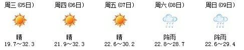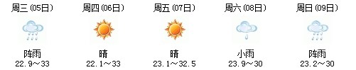 雖然明天太陽有點兇,但7日、8日、9日三天陣雨及時出現(xiàn),日最高氣溫穩(wěn)定在30℃附近。