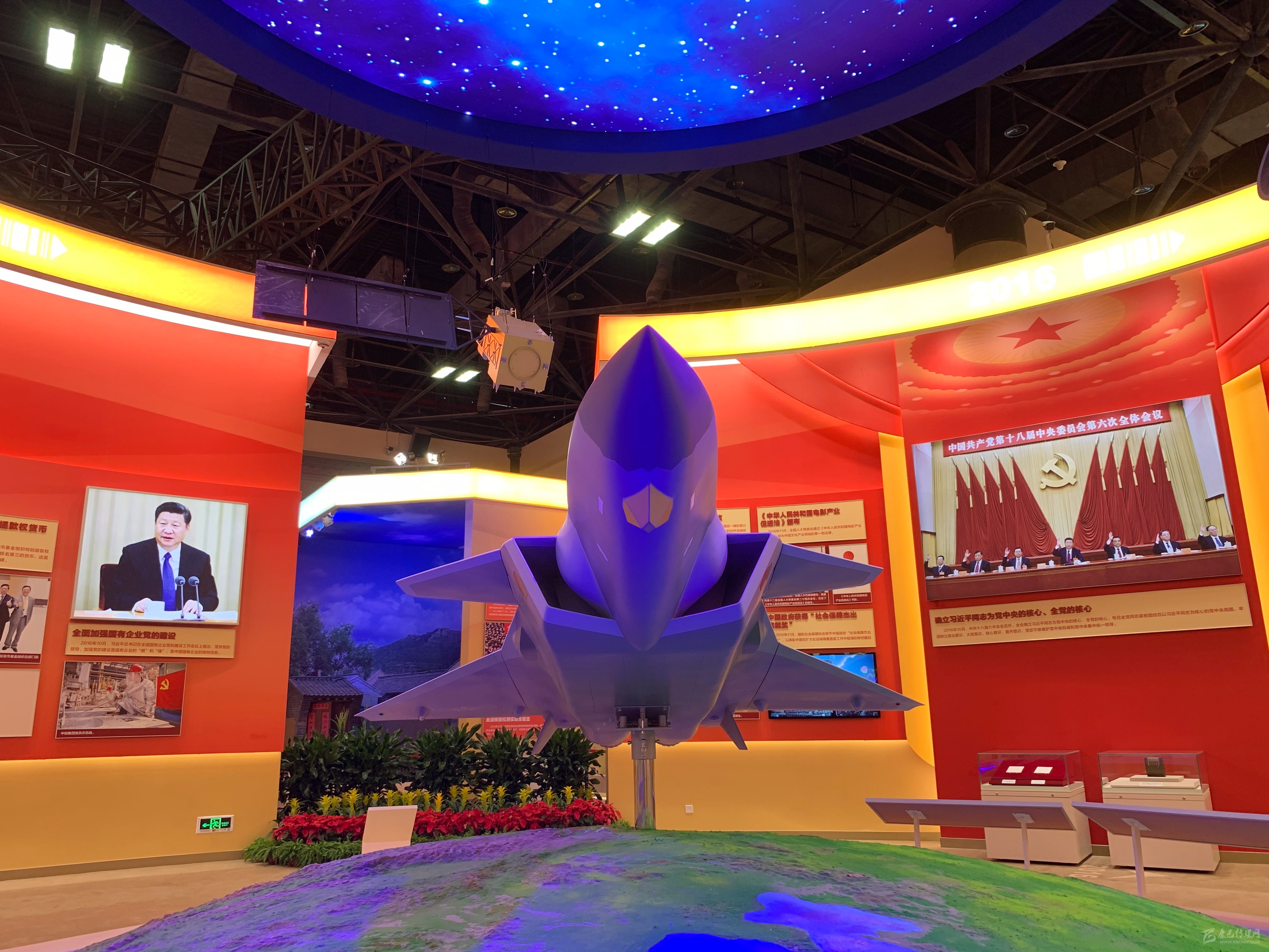 此次展覽中,殲-20戰(zhàn)斗機以獨立模型的方式展出。