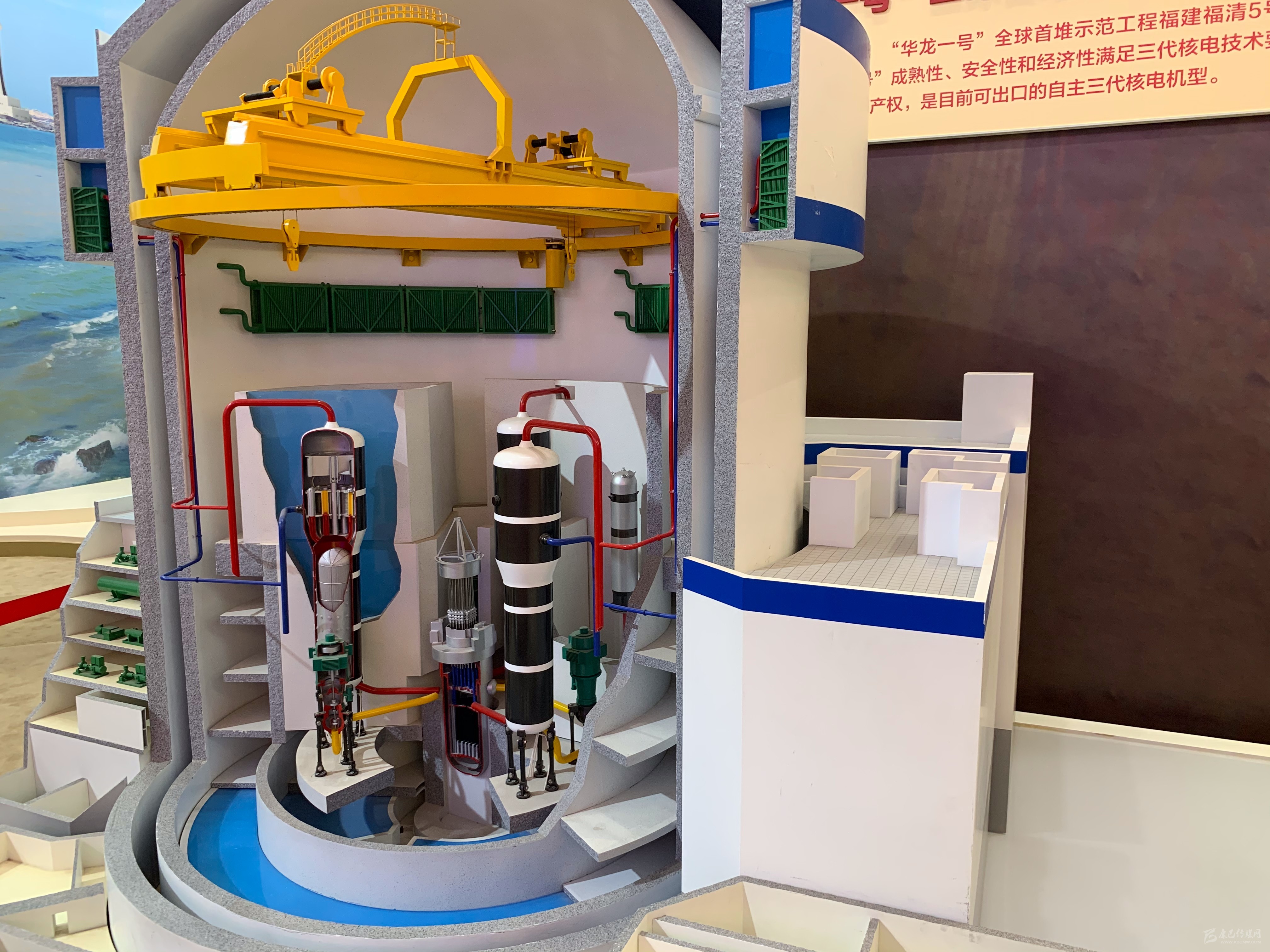 展館現(xiàn)場,縮小版的華龍一號模型吸引了很多觀眾駐足。