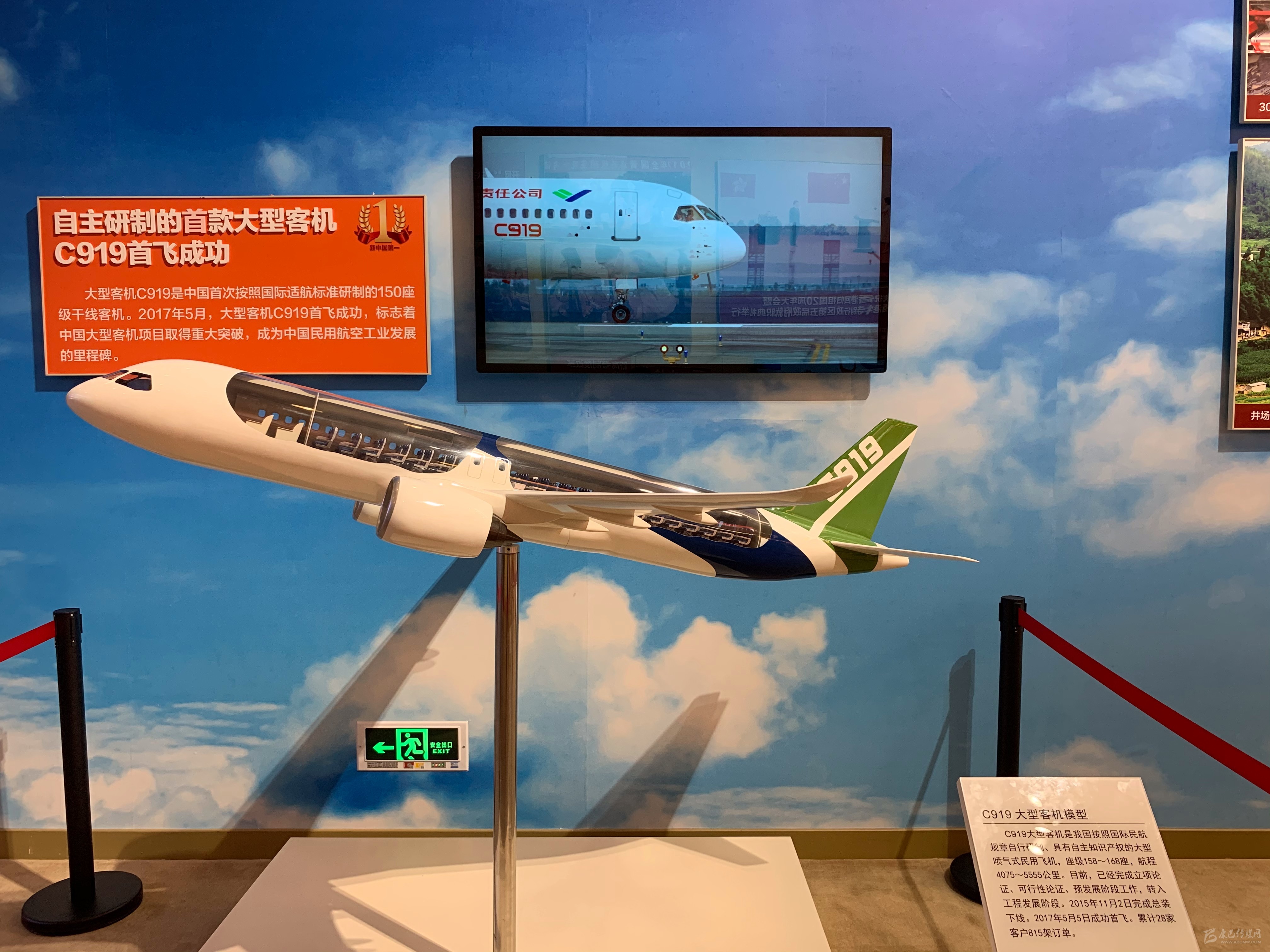 在2017年展區(qū),C919大飛機模型,配合解說圖片以及總裝下線當(dāng)日的視頻展出。
