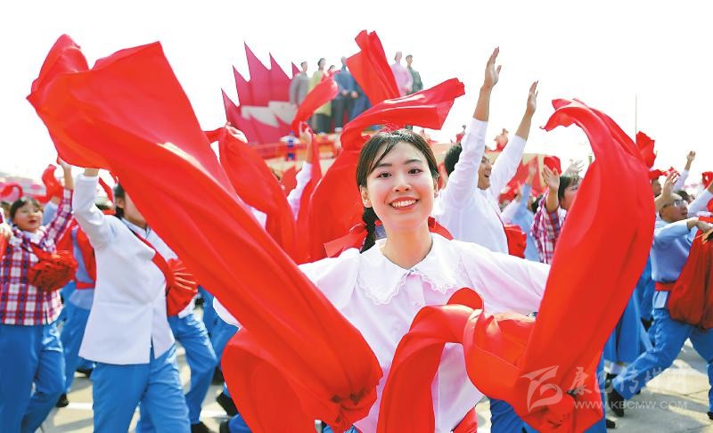 群眾游行中的凝心鑄魂方陣。 新華社記者王毓國(guó)攝