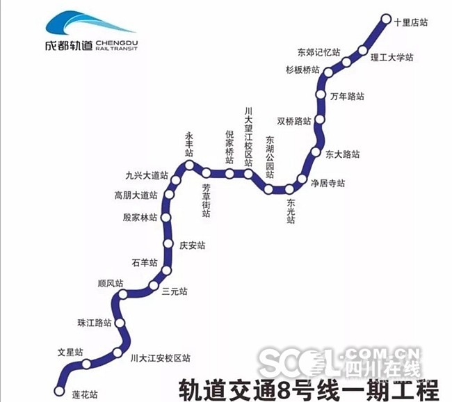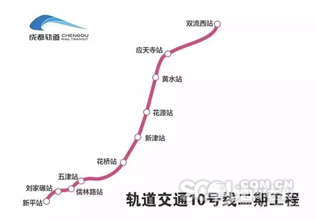 南起蓮花站,北至十里店站。沿線主要經(jīng)過雙流區(qū)、武侯區(qū)、高新區(qū)、錦江區(qū)、成華區(qū)。線路全長29.1km,共設(shè)車站25座,均為地下站、其中換乘站14座。