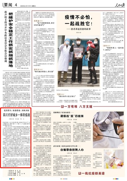 今天,人民日報刊發(fā)題為《黨員帶頭 依靠群眾 齊抓齊防——四川打好城鄉(xiāng)一體防疫戰(zhàn)》的文章,聚焦四川依法防治、聯(lián)防聯(lián)控、科學(xué)防治疫情,進一步織密疫情防控網(wǎng)。