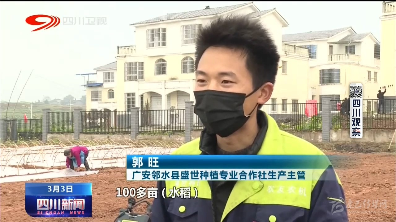 廣安市鄰水縣盛世種植專業(yè)合作社生產(chǎn)主管 郭旺: 我們今年預(yù)計(jì)(播種)100多畝水稻,現(xiàn)在已完成30%左右,剩余的估計(jì)在3月10號(hào)左右完成。