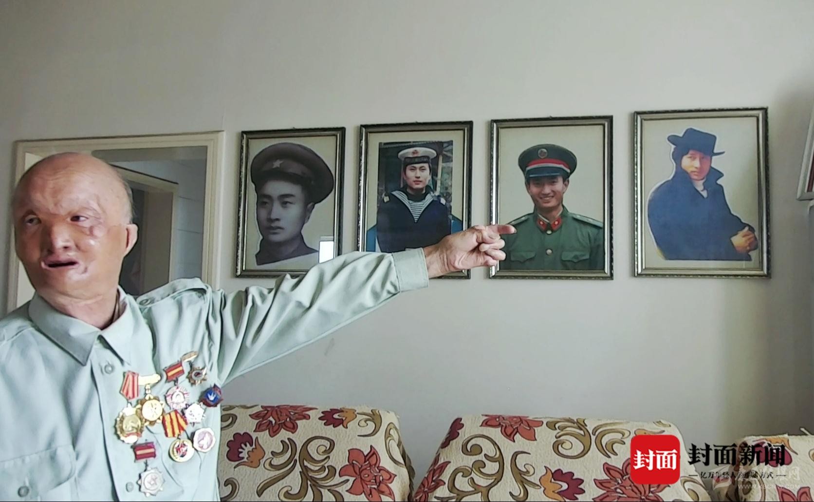 初見這位老人,他的面容讓人印象深刻。69年前那個冬天的朝鮮戰(zhàn)場上,是他一輩子最難忘的經(jīng)歷。年僅20歲的他遭遇敵機(jī)投擲的凝固汽油彈,導(dǎo)致面部、手部嚴(yán)重?zé)齻斐梢患墏麣垺?/p>