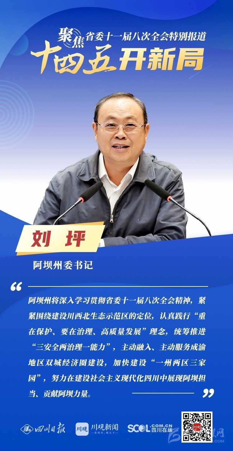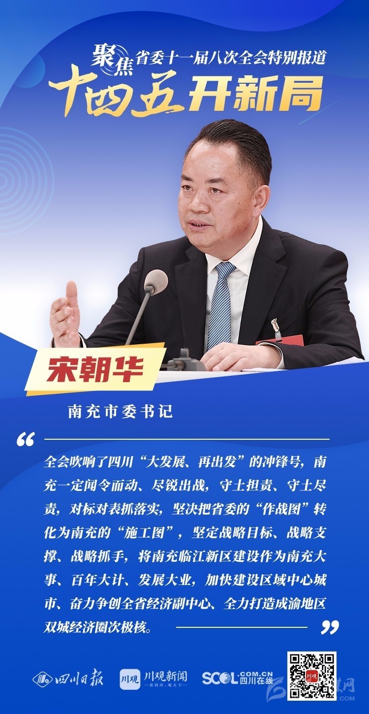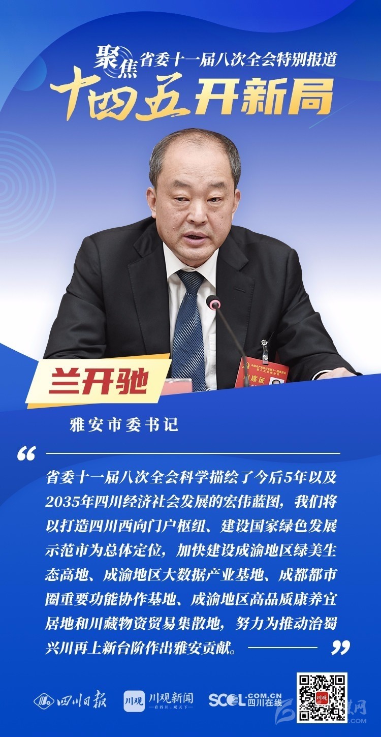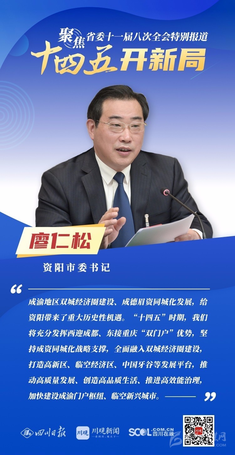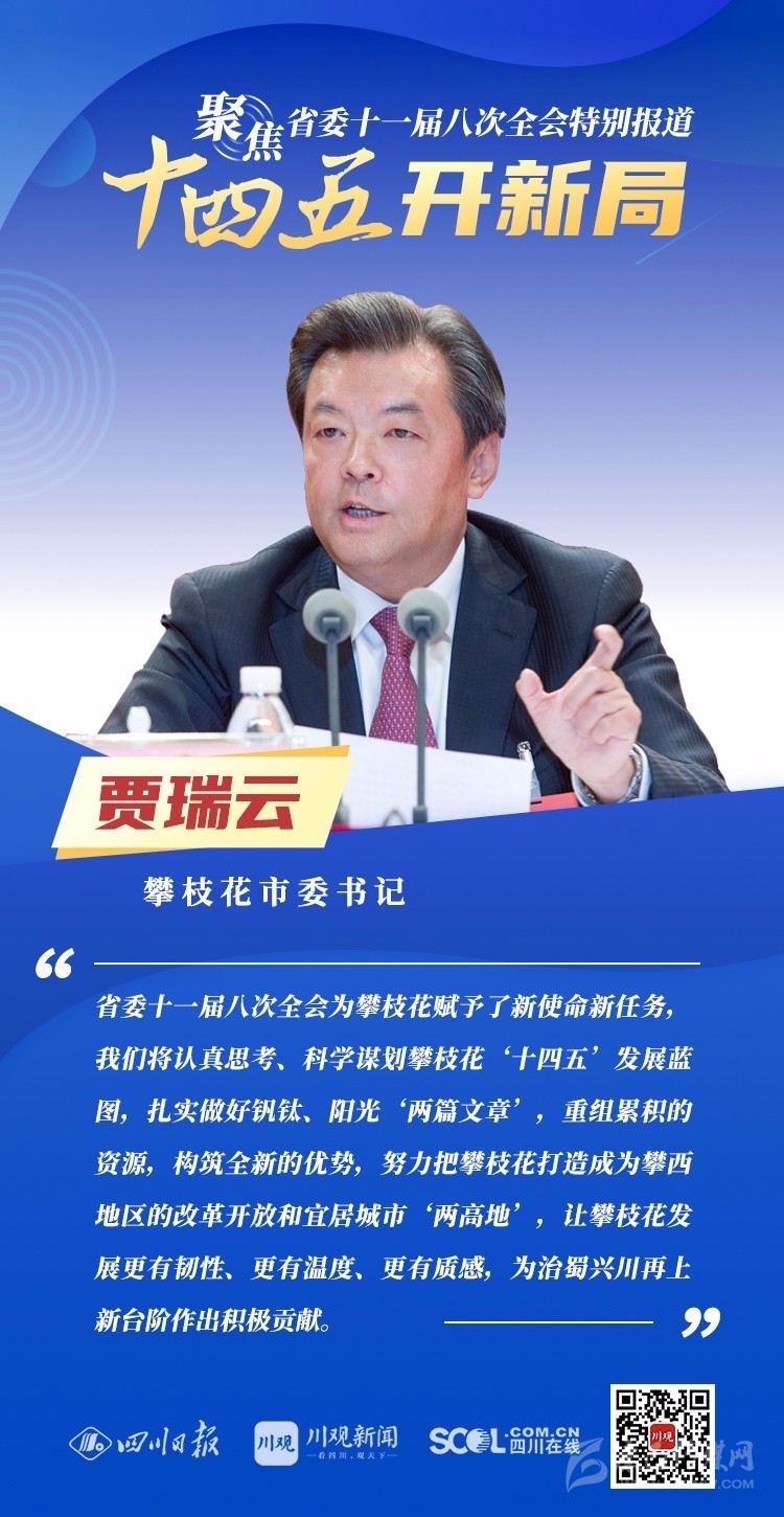 12月3日,中共四川省委十一屆八次全會(huì)在成都開(kāi)幕,全會(huì)將深入學(xué)習(xí)貫徹黨的十九屆五中全會(huì)精神,審議《中共四川省委關(guān)于制定四川省國(guó)民經(jīng)濟(jì)和社會(huì)發(fā)展第十四個(gè)五年規(guī)劃和二〇三五年遠(yuǎn)景目標(biāo)的建議(討論稿)》,為未來(lái)5年乃至更長(zhǎng)時(shí)期四川發(fā)展謀劃新藍(lán)圖 。