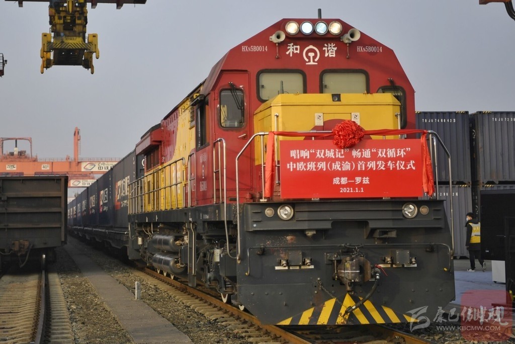 1月1日上午10時(shí)15分,重慶、成都兩地同時(shí)發(fā)出2021年中歐班列(成渝)第一趟列車。