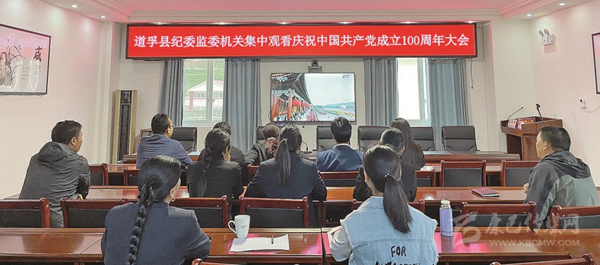 道孚縣紀(jì)委監(jiān)委干部職工集中觀看慶祝大會直播。 張德禧 攝