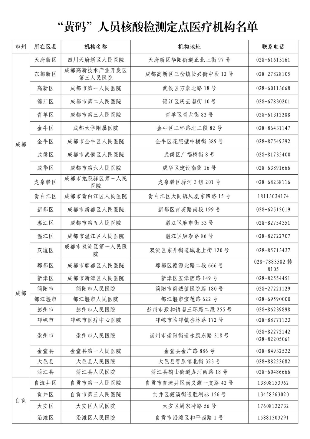 四川21市州“黃碼”人員核酸檢測和看病就醫(yī)定點機構(gòu)名單來了