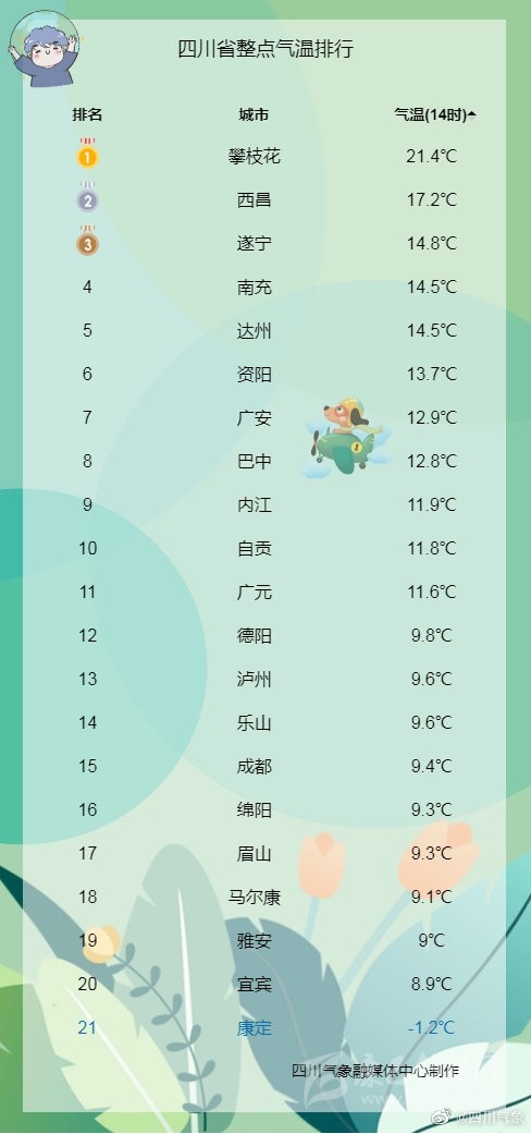 據(jù)四川省氣象臺(tái)預(yù)報(bào),今天的天氣跟昨天差不多: