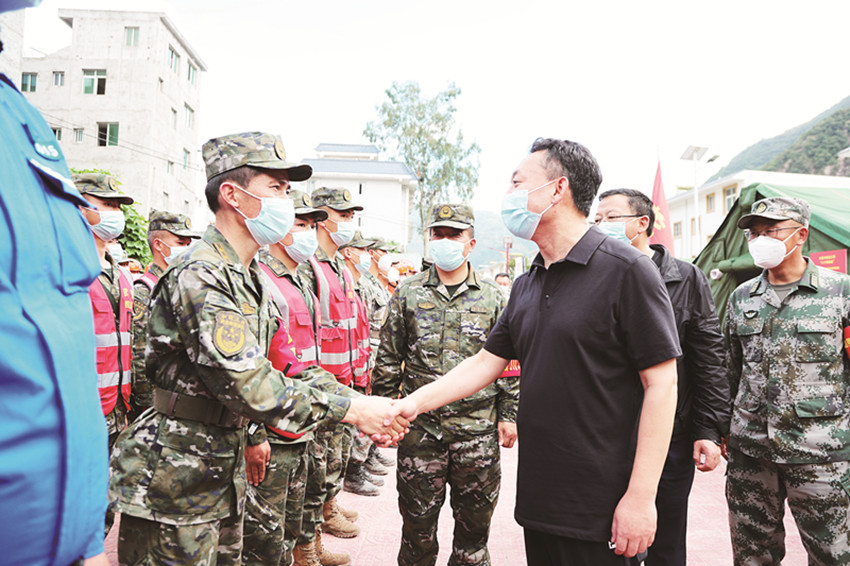 沈陽來到“9·5”瀘定縣6.8級地震抗震救災(zāi)前線指揮部,看望值班值守干部和醫(yī)務(wù)人員、地震專家、搶通保暢隊伍。他說,這次地震既檢驗了我們的應(yīng)急救援體系和能力水平,也是對各級黨組織和廣大黨員干部的巨大考驗。地震發(fā)生后,前線指揮部統(tǒng)籌調(diào)度、高效運轉(zhuǎn),各條戰(zhàn)線沖鋒陷陣、攻堅克難,確保了抗震救災(zāi)各項工作有力有序開展,彰顯了甘孜精神、甘孜速度、甘孜力量。當(dāng)前,抗震救災(zāi)仍處在關(guān)鍵時期,希望大家堅持人民至上、生命至上,咬緊牙關(guān)、繼續(xù)奮戰(zhàn),團結(jié)組織廣大干部群眾努力打贏抗震救災(zāi)這場硬仗。在看望省消防救援總隊、省森林消防總隊、解放軍陸軍勤務(wù)支援某旅、武警四川總隊機動第二支隊、特警支隊、安能集團和兄弟市州救援隊伍時,沈陽說,一方有難、八方支援,面對突發(fā)自然災(zāi)害,各方救援力量火速馳援,不畏艱險、不怕犧牲,戰(zhàn)山關(guān)、渡激流,水陸空齊發(fā)力,爭分奪秒搶救生命,一幅幅逆向而行的搶險畫面,一個個“飛奪瀘定橋式救援”的英雄身影,深刻詮釋了中華民族守望相助、和衷共濟的血脈親情,康巴兒女永遠感恩、銘記于心。