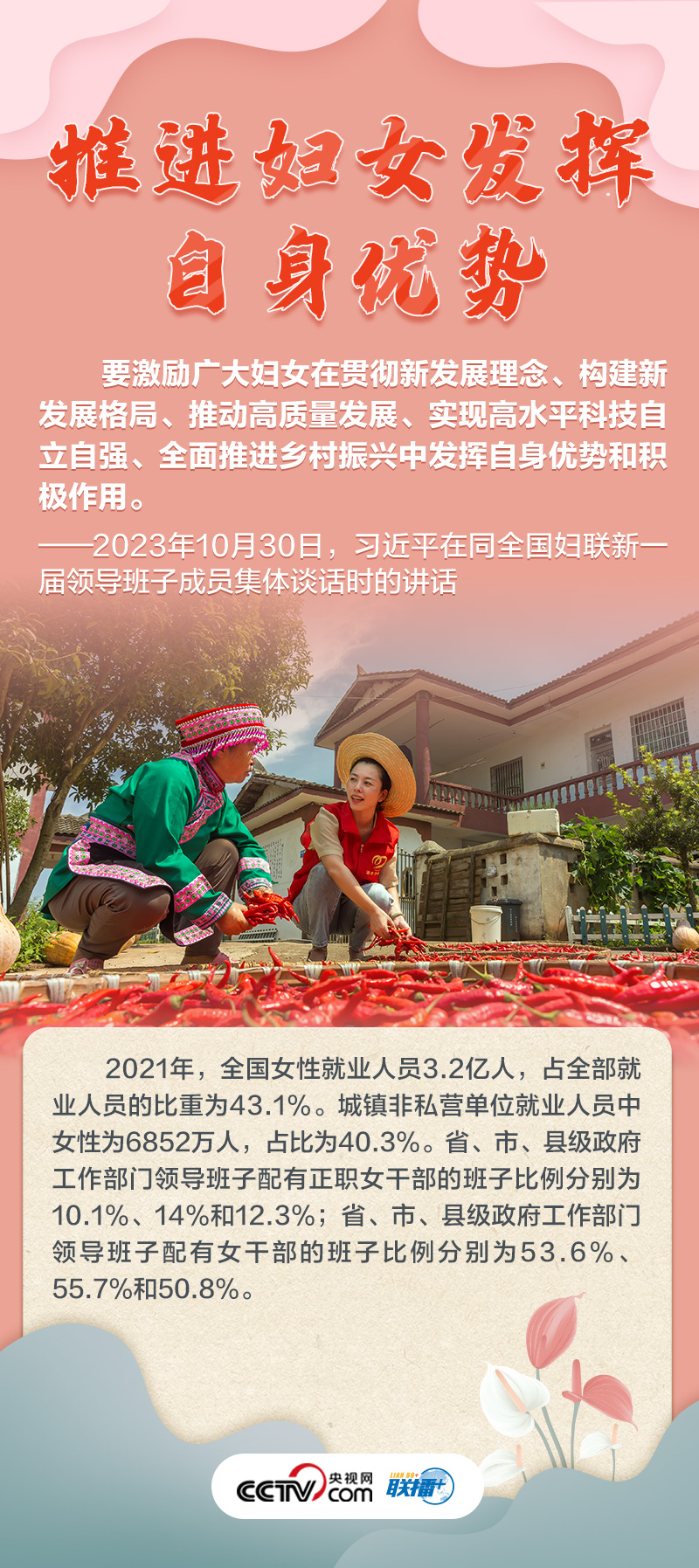 如何做好新時代新征程上婦女兒童工作,凝聚起中國式現(xiàn)代化建設的巾幗力量?央視網(wǎng)《聯(lián)播+》特推出海報,與您一起了解總書記最新指示,以及近年來婦女事業(yè)和婦聯(lián)工作取得的非凡成就。