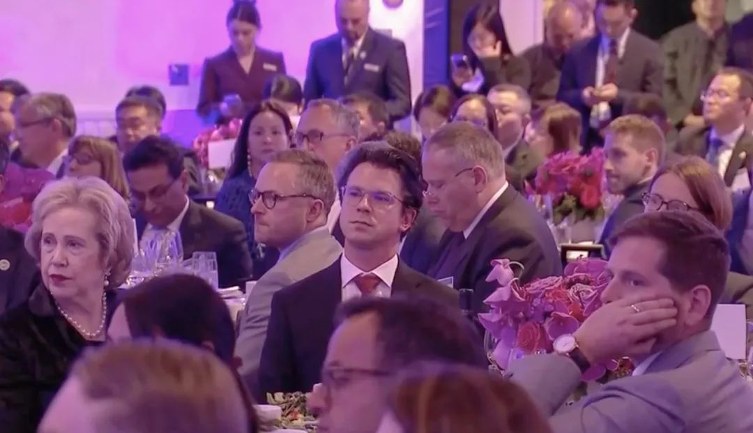 △參加宴會(huì)的人士認(rèn)真聆聽演講。