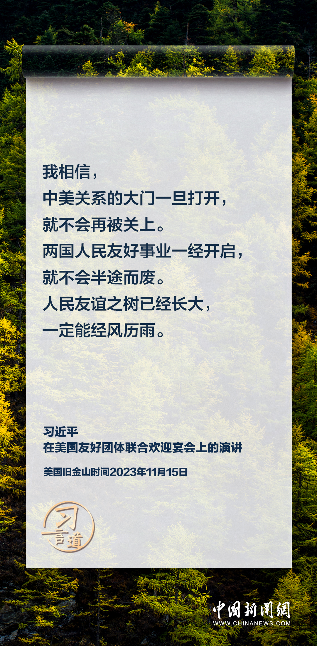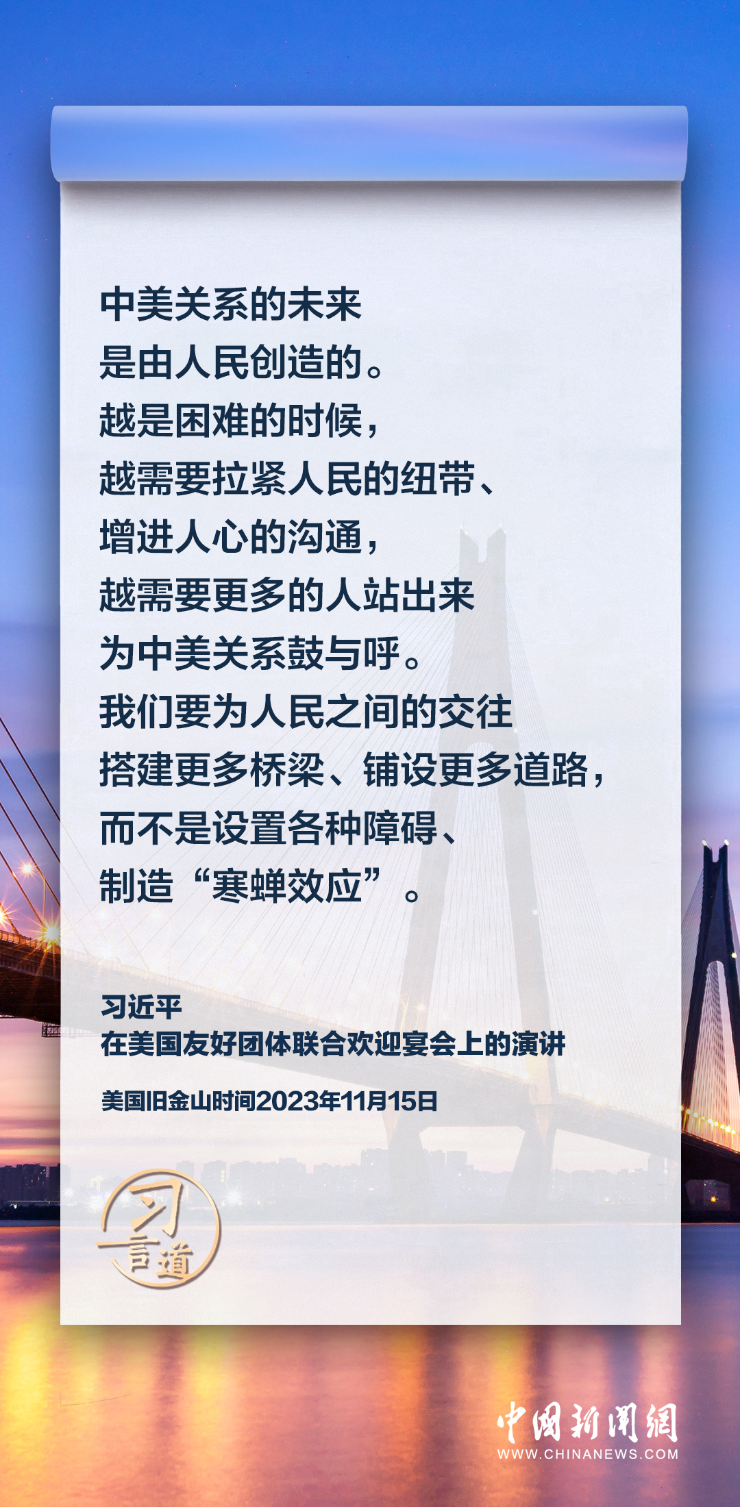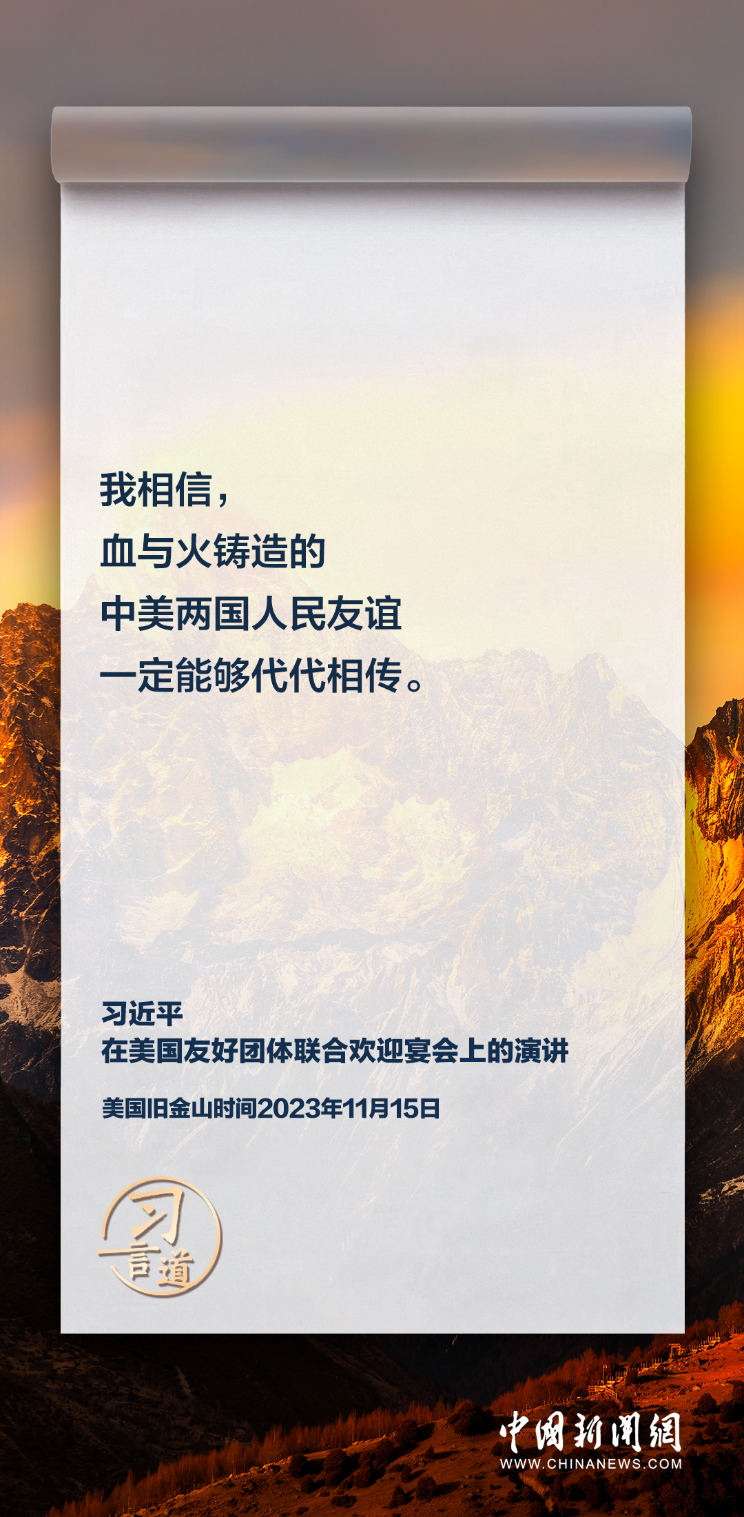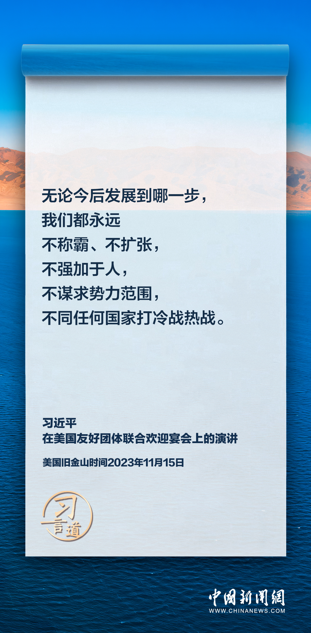 當?shù)貢r間11月15日,中國國家主席習(xí)近平在美國舊金山出席美國友好團體聯(lián)合歡迎宴會并發(fā)表演講。習(xí)近平在演講中從“我”和“我們”說起,提出中國主張、表明中國立場、展現(xiàn)大國擔(dān)當,話語擲地有聲。