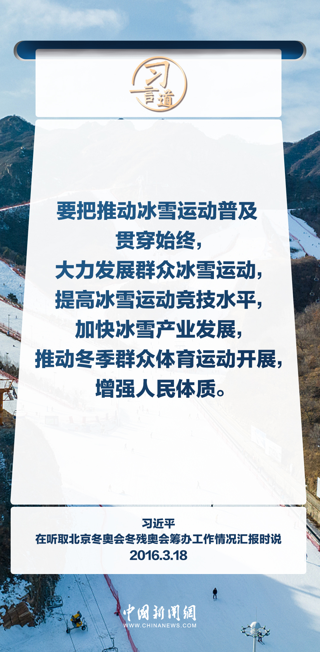 【冰雪春天】習言道|要把推動冰雪運動普及貫穿始終